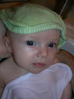 Ahhh, more embarrassing pictures that will cause Emma to hate her parents at the age of 13. Emma is continuing to do better with her reflux (yippee!!). In fact so well that we were able to give her a full fledged bath in the sink (before it has been sponge baths at rapid speed with her screaming at her parents). I don't think Emma really liked it, but she at least was neutral... :)