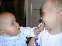 Emma and Noah playing, which consisted of Emma hitting Noah's face. Noah began calling Tim and I "Emma Mama" and "Emma Dada." Very cute.