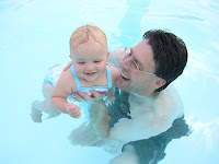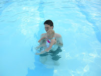 Emma and Tim getting ready for Emma's first swimming lesson. Check out her blond toupee! :)